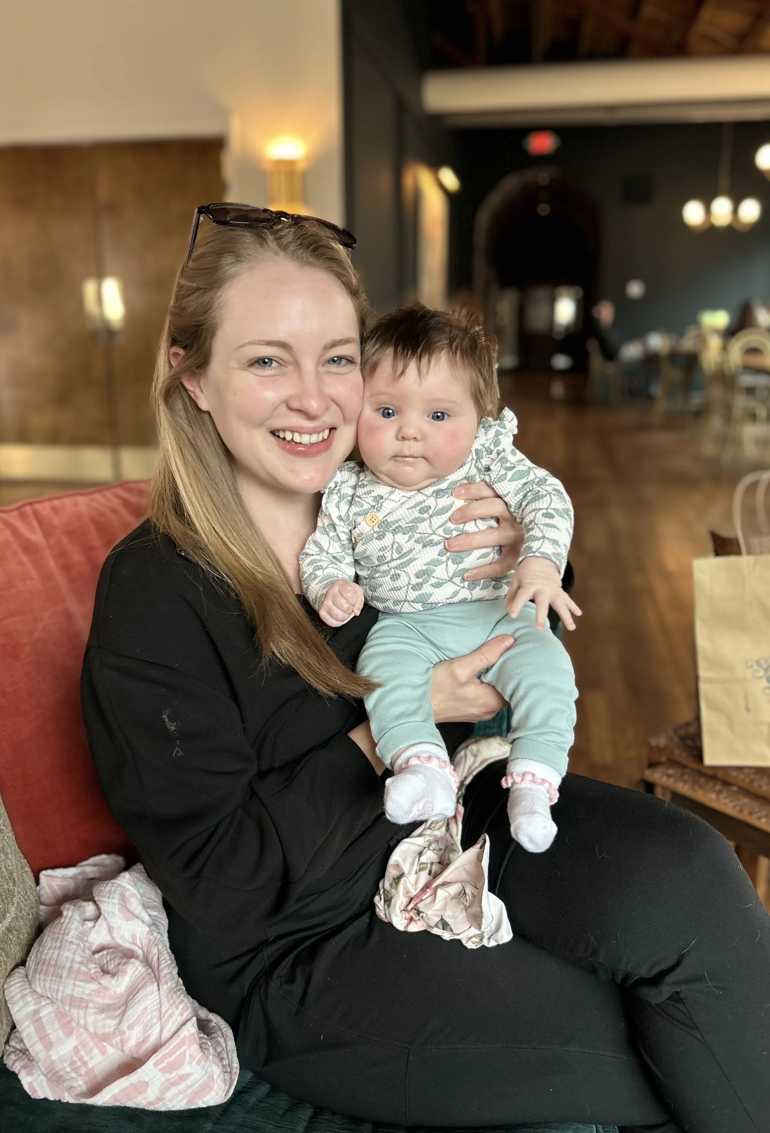 I went here opening weekend last year and like many people, quickly fell in love. They serve Rev coffee (always a plus) as well as pastries and full breakfast and lunch options as well. The outdoor patio space is my favorite when I’m with the family, but inside is great for editing and working on my computer. Pictured below is my daughter Ryan enjoying their cinnamon roll and me and baby Avery getting some work done on a different day (please ignore the spit up on my jacket).