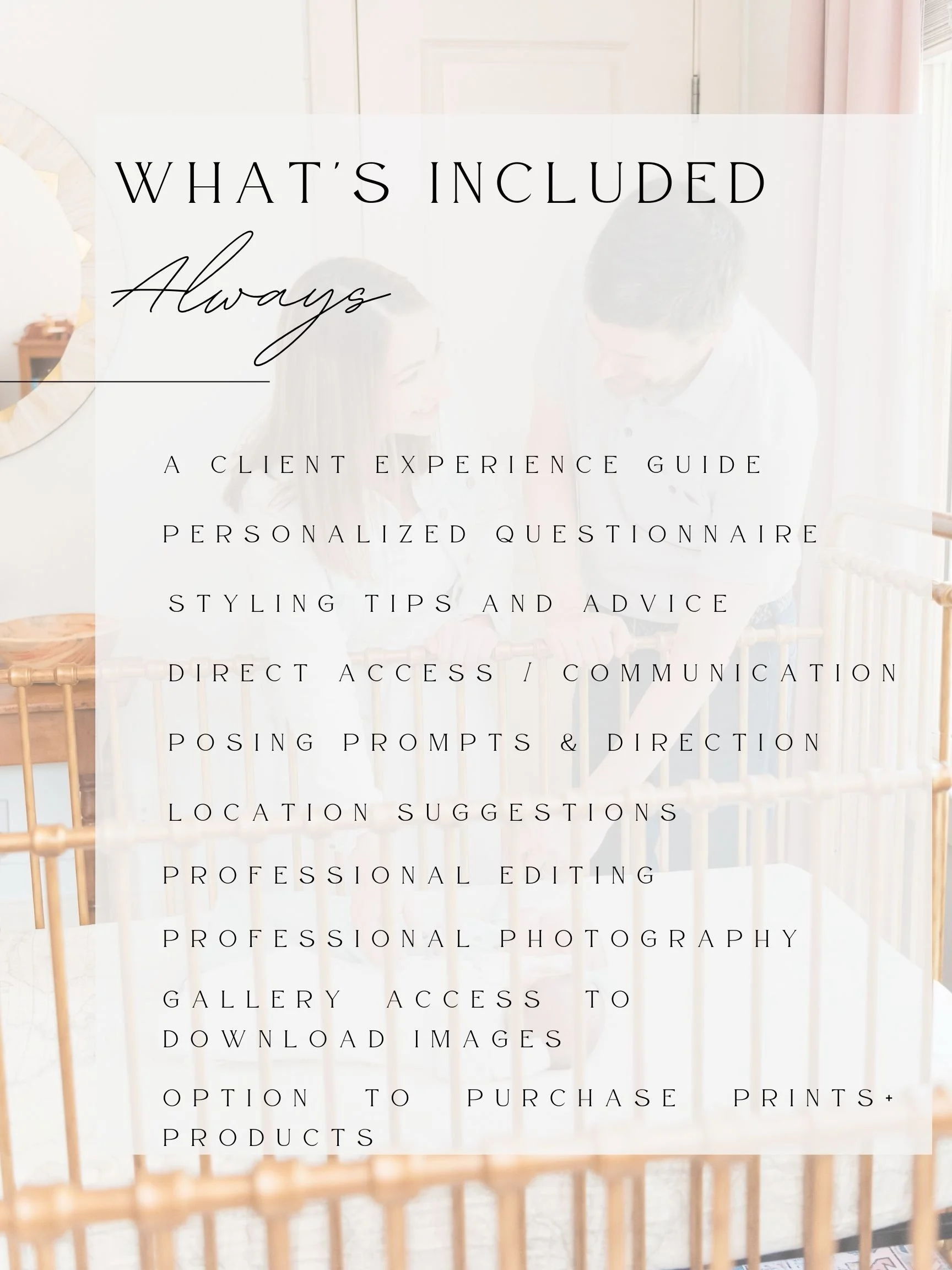 Customized for you with options such as: maternity, newborn, family, milestones, and cake smash sessions